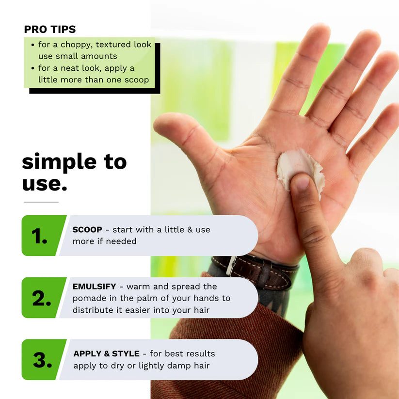 A low & natural shine clay that provides volume and texture, the Clay Pomade creates a natural look while offering strong, effortless pliable control. Blending clays, waxes, and oils, this styling clay works in harmony with your hair to help maintain a healthy appearance for both your hair and scalp. Recommended for a wide range of styles from short and messy to loose and neat with flow and control.